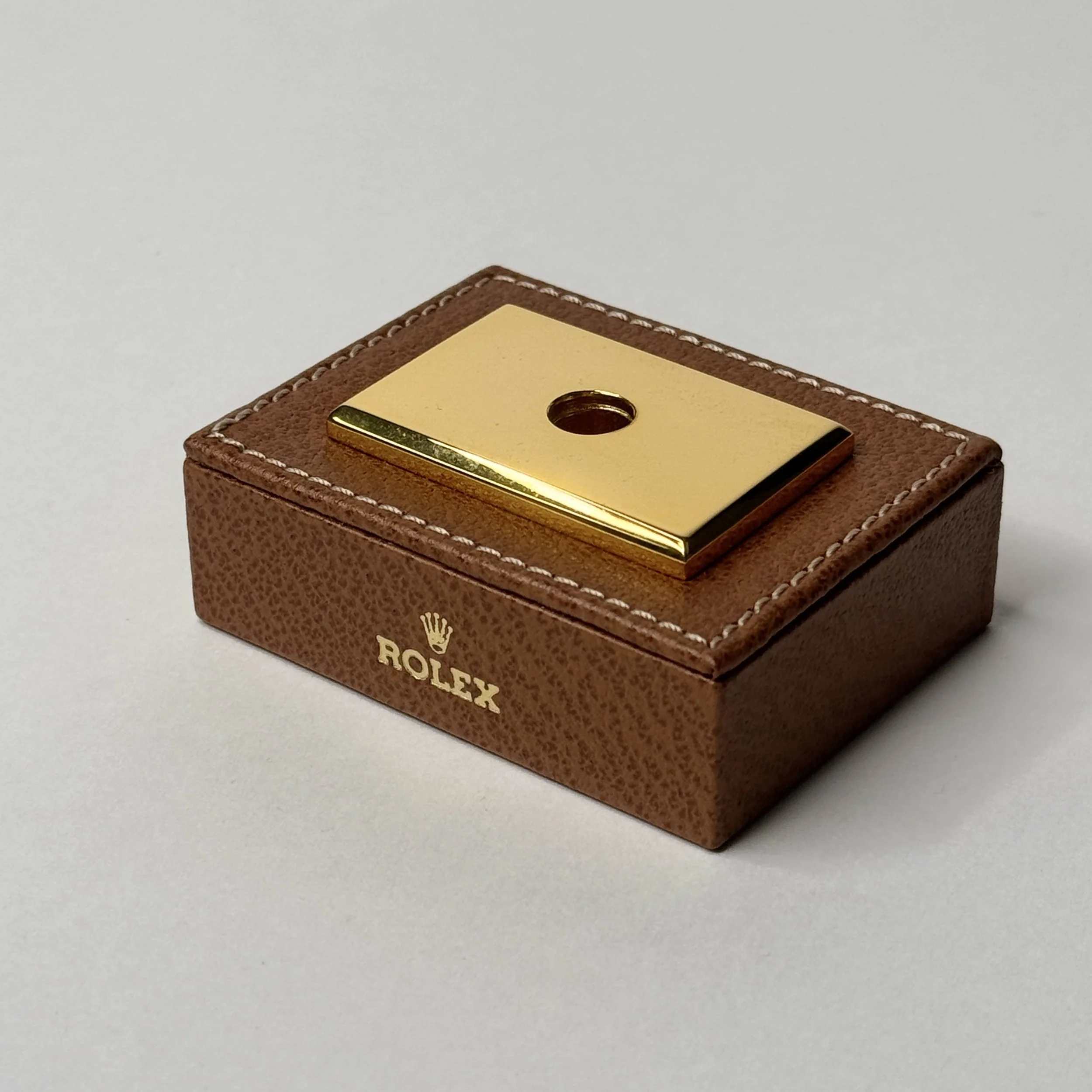 The set is in excellent vintage condition with minor signs of age. The box shows light wear on the outer edges, while the pen and stand remain well-preserved, with the gold-tone base retaining its shine and minimal surface marks.